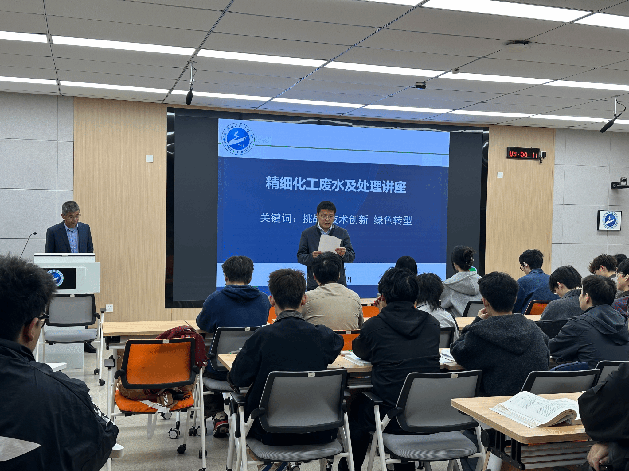 为深化产教融合、提升环境工程专业学生的工程实践能力,2026422日,应《水污染控制工程》课程邀请,精细化工废水处理领域资深专家杨文斌教授走进课堂,为环境工程专业大三学生带来了一场题为《精细化工废水处理讲座》的专题报告。讲座围绕行业现状、核心技术、工程案例及绿色转型等维度展开,内容丰富、案例翔实,现场气氛热烈。